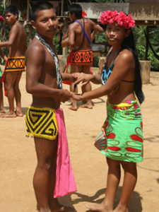 Tradiciones. La fiesta es la ocasión de beber con felicidad, cantar y bailar estas fiestas se realizan cada que hay abundancia de producción de alimentos todos los participantes llevan regalos como yuca, hojas de palma joven, plumas de aves, adornos con dibujos, lanzas, collares y brazaletes. Durante estas fiestas las mujeres y los hombres permanecen separados cantando. Estas fiestas duran dos días hasta que se termine la bebida, tiempo en el cual ningún participante de la fiesta puede dormir.